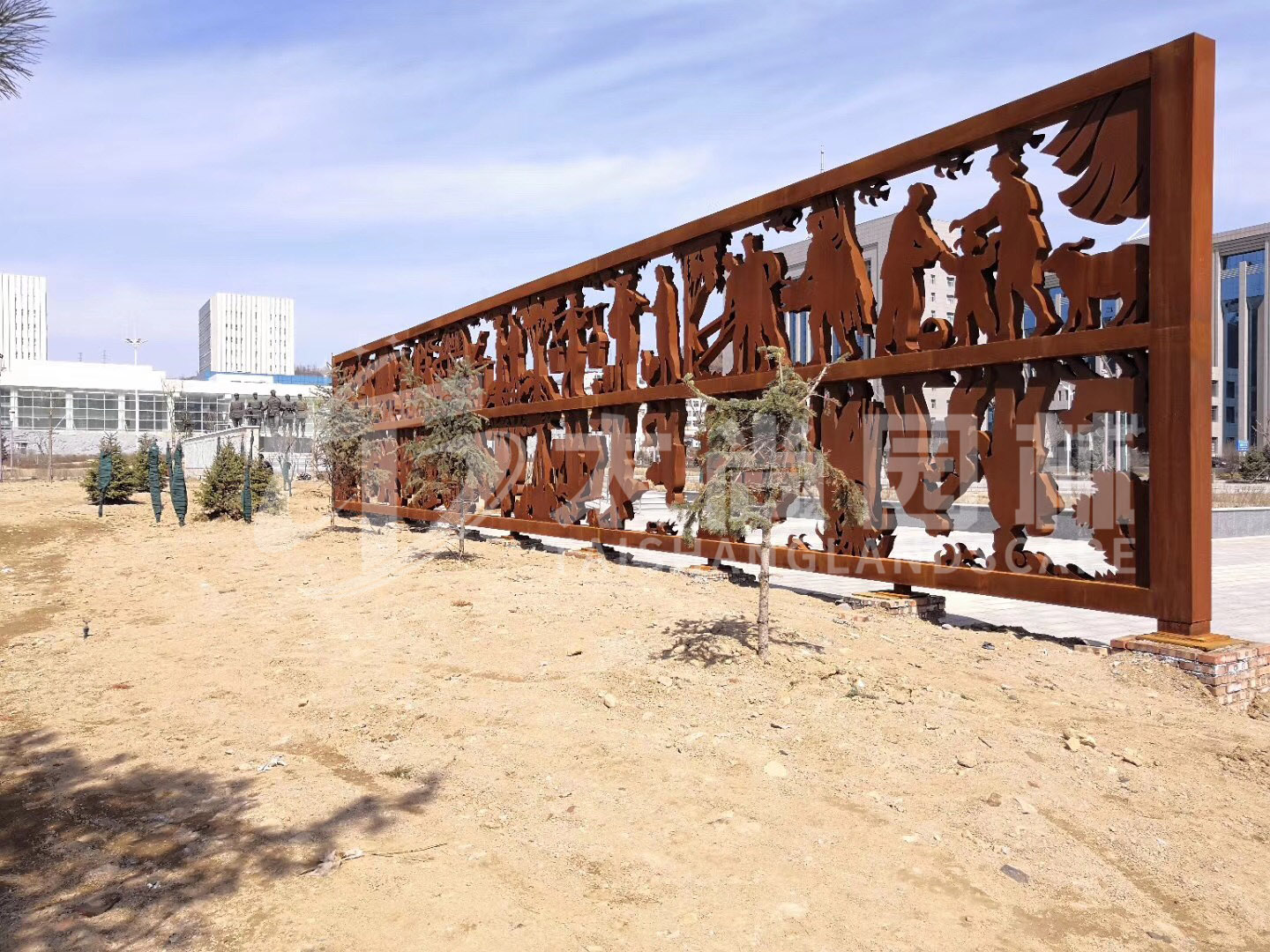 安裝于山西榆林市,雕塑采用剪紙的形式體現出人們的豐富生活,對生活的熱愛
